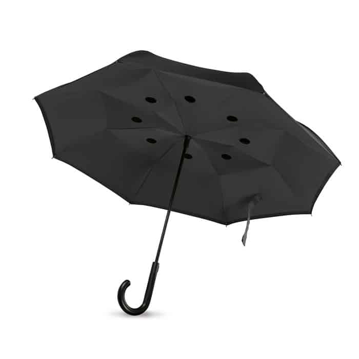 Le système ingénieux d’ouverture inversée permet d’ouvrir le parapluie dans les endroits exigus ou dans votre voiture.